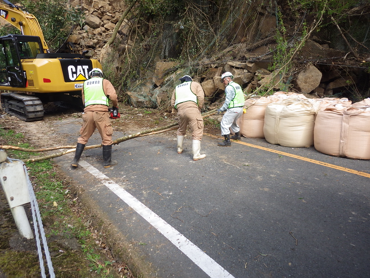 【阿蘇立野地区及び菊池地区県道45号線、小池高山IC付近、民間施設での復旧作業状況】