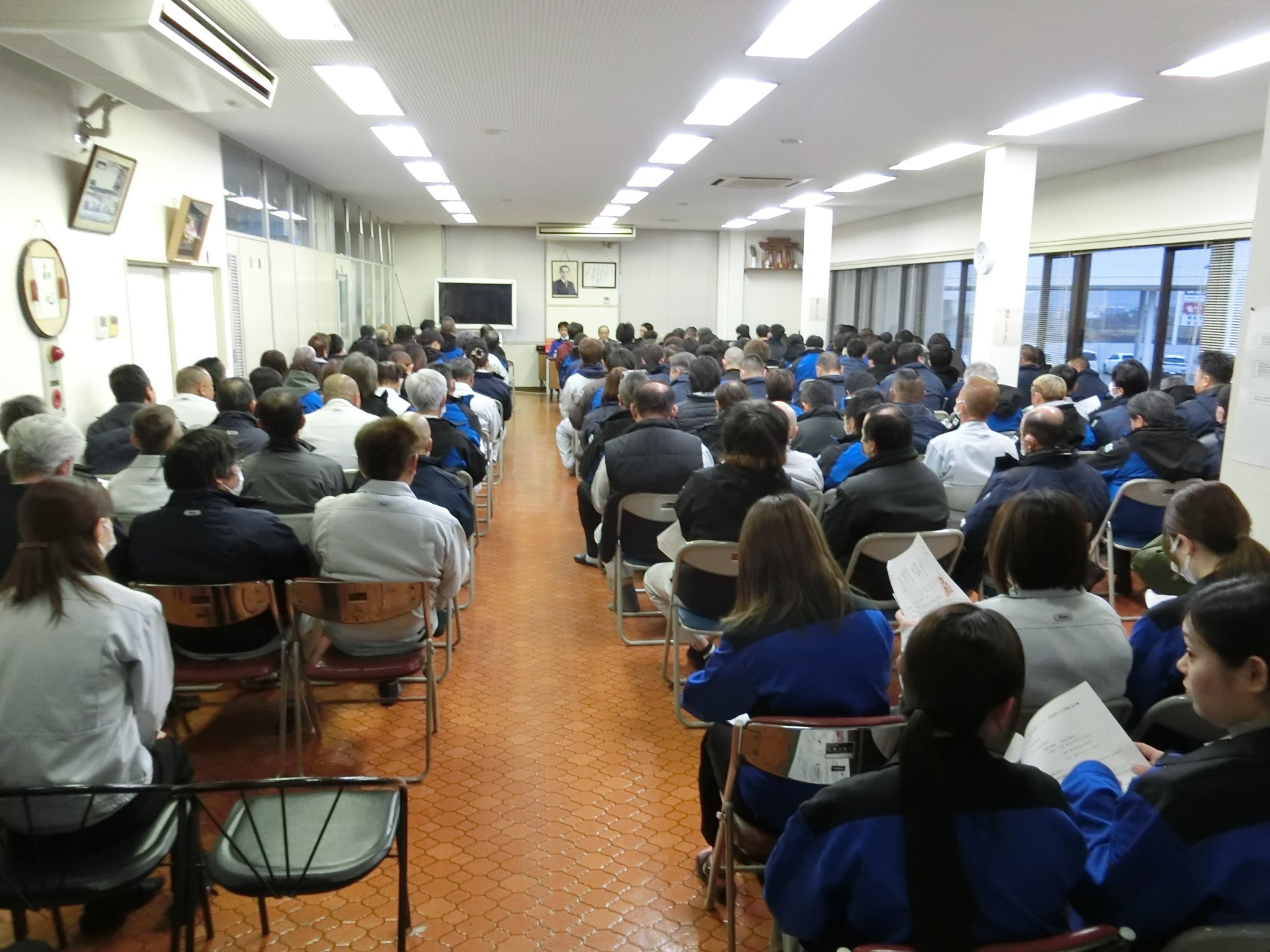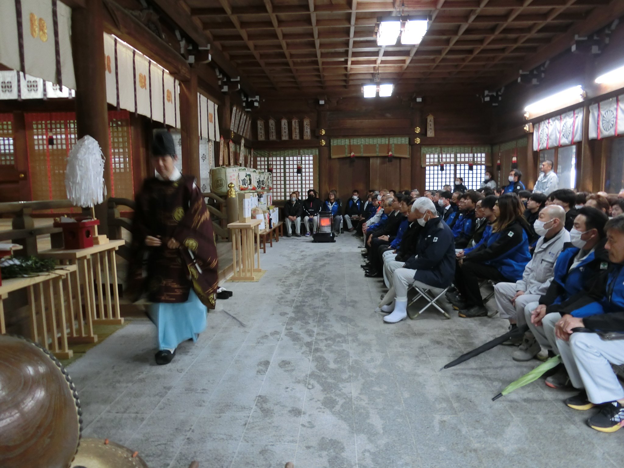 朝礼後、工事の安全と社員の健康を祈願して神社参拝を行いました。