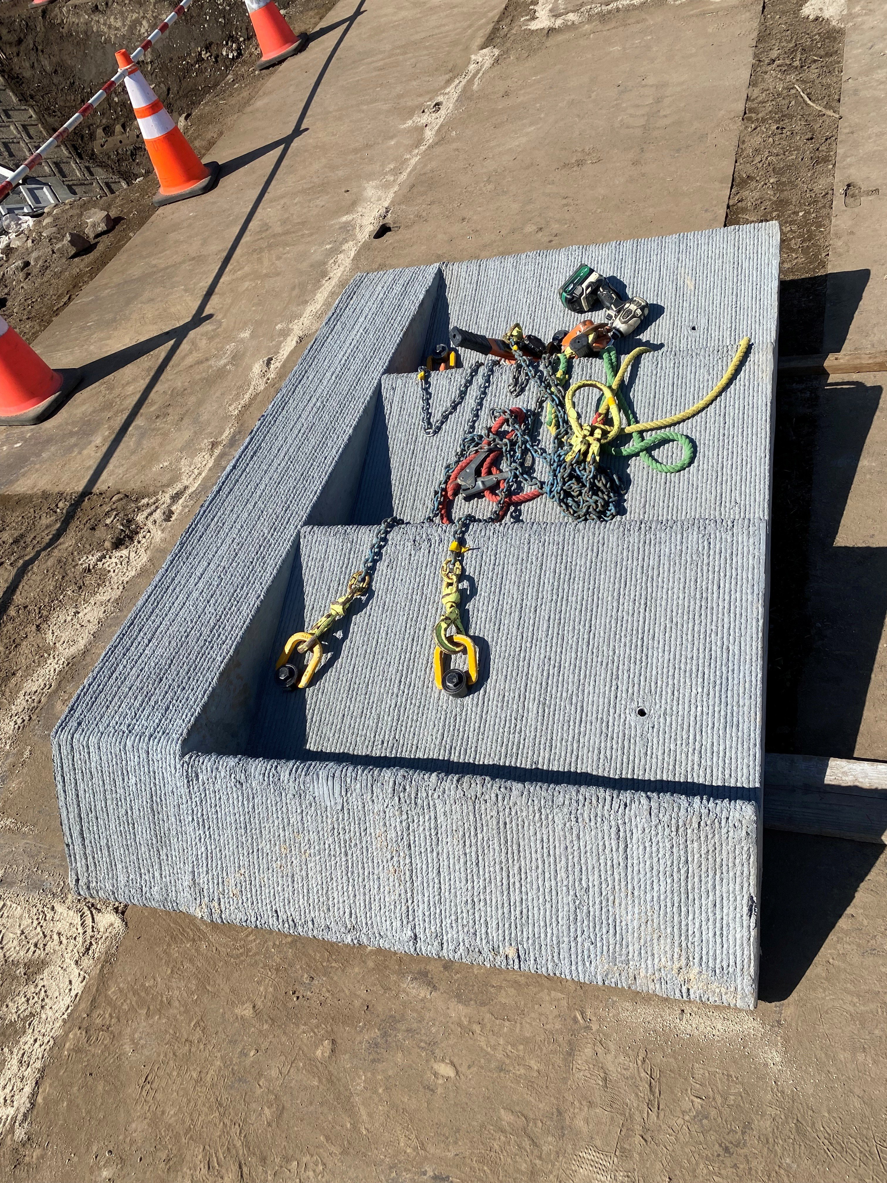 従来の現場打ち工法では完成まで約9日を要していましたが、3Dプリントによるプレキャスト化で、設置から仕上げまで実質5日という驚異的なスピードで施工できました。