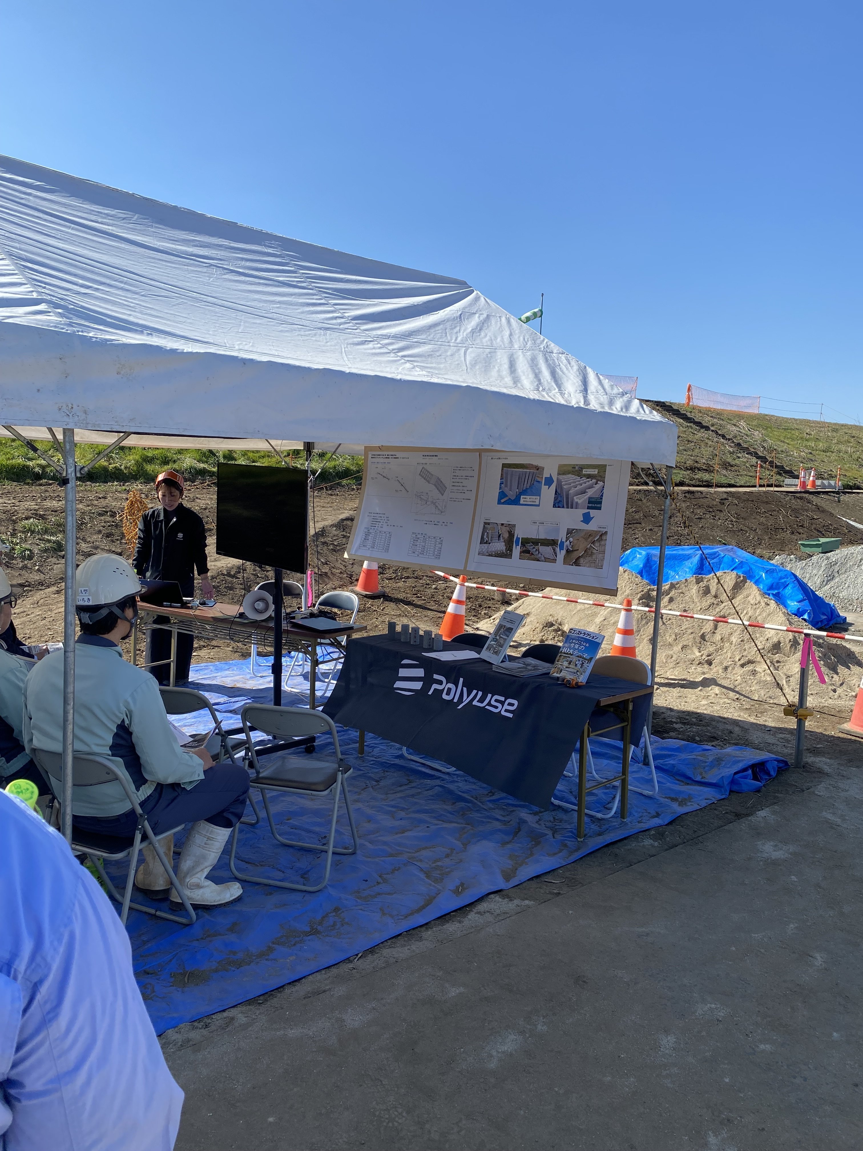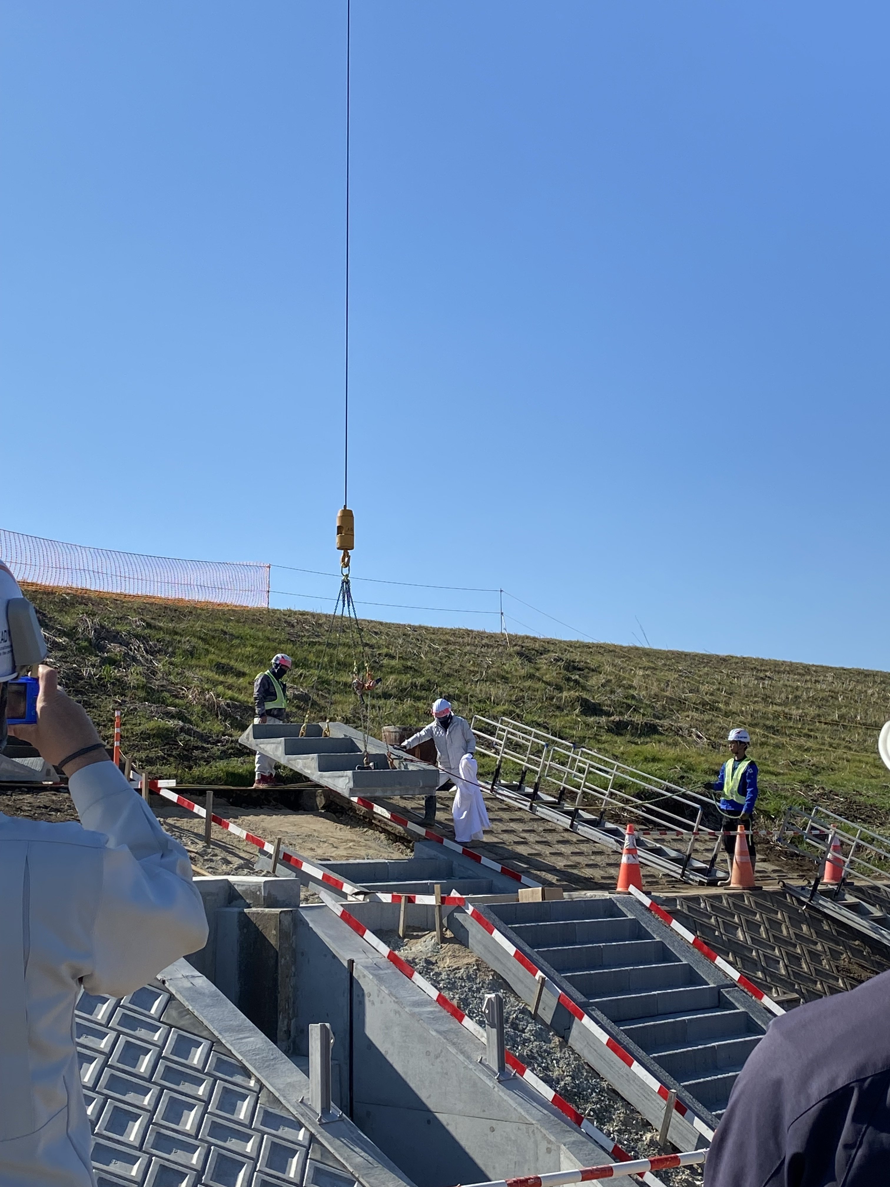 分田地区河道掘削工事において、建設用3Dプリンターで作成した階段工設置見学会を開催しました。